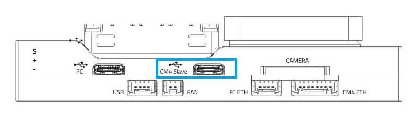 2. Connect computer to USB-C CM4 Slave port used to power & flash the RPi.