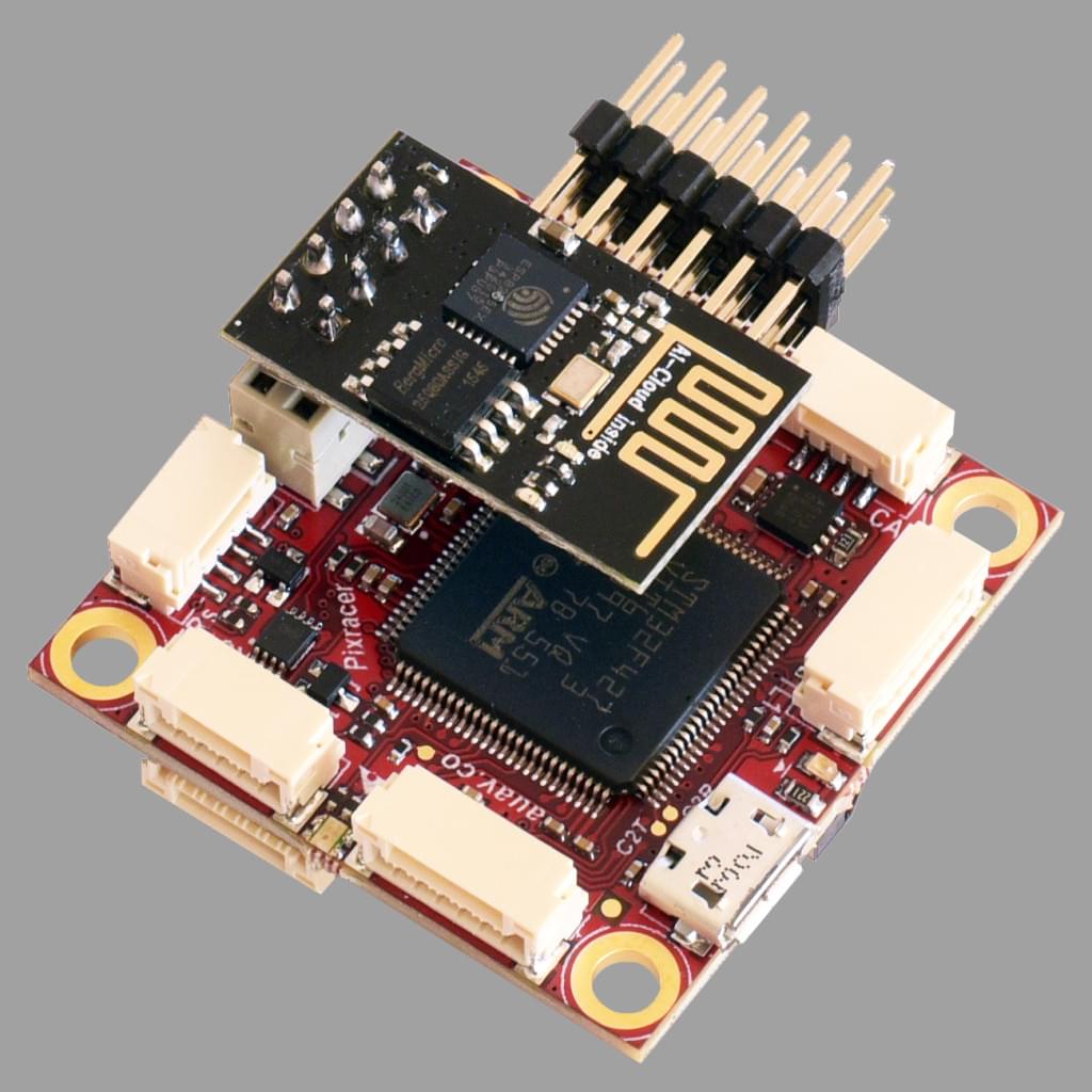 The Pixhawk® XRacer board family is optimized for small racing quads and planes. In contrast to Pixfalcon and Pixhawk it has in-built WiFi, new sensors, convenient full servo headers, CAN and supports 2M flash.